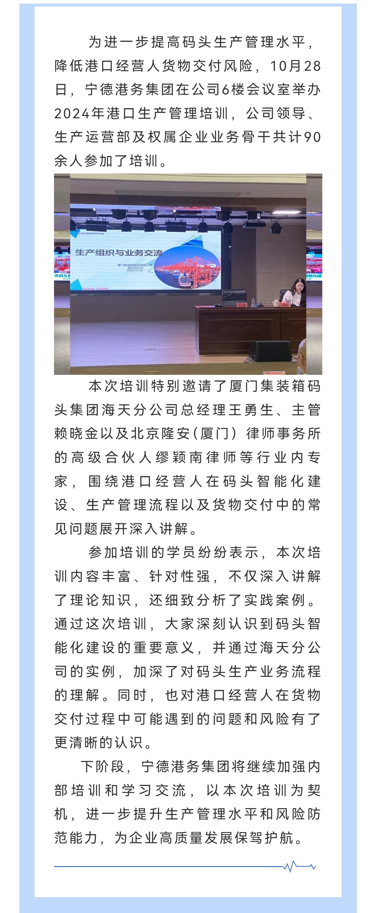 秉承“团结、爱港、务实、发展”的理念,全力推进漳湾作业区码头泊位连片开发,不断完善公司治理体系,深化体制机制改革,聚焦主责主业发展实体经济,推动产业转型升级,打造区域港口龙头企业,成为宁德市建设公共码头、助力工业及经济发展的平台及抓手,推动地方经济高质量发展超越。