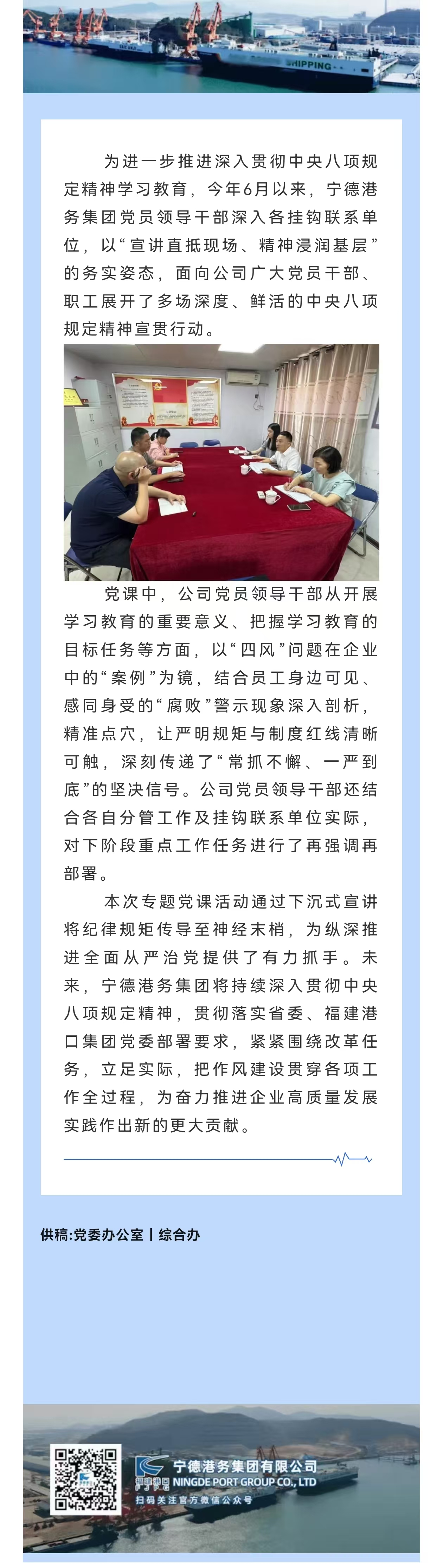 秉承“团结、爱港、务实、发展”的理念,全力推进漳湾作业区码头泊位连片开发,不断完善公司治理体系,深化体制机制改革,聚焦主责主业发展实体经济,推动产业转型升级,打造区域港口龙头企业,成为宁德市建设公共码头、助力工业及经济发展的平台及抓手,推动地方经济高质量发展超越。