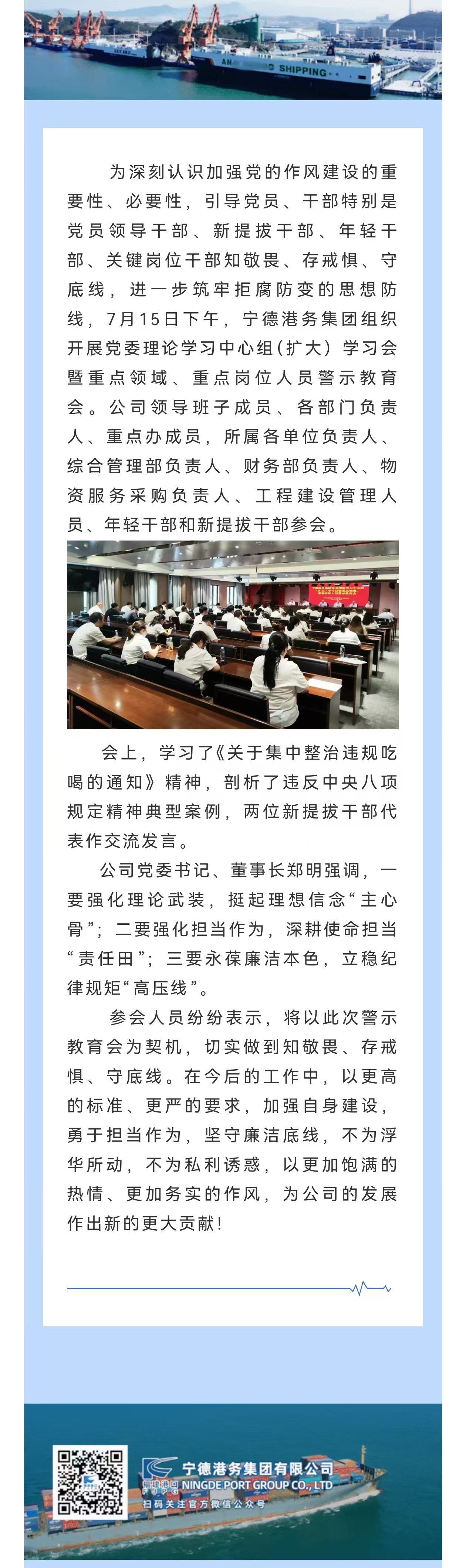 秉承“团结、爱港、务实、发展”的理念,全力推进漳湾作业区码头泊位连片开发,不断完善公司治理体系,深化体制机制改革,聚焦主责主业发展实体经济,推动产业转型升级,打造区域港口龙头企业,成为宁德市建设公共码头、助力工业及经济发展的平台及抓手,推动地方经济高质量发展超越。